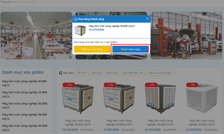 Nếu quý khách đã kết thúc quá trình lựa chọn sản phẩm, có thể bấm vào ô "Thanh toán ngay"
