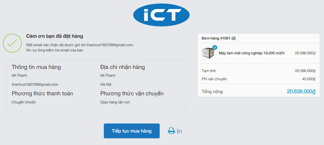 Trên đây toàn toàn bộ các hình thức thanh toán của iCT. Mọi băn khoăn, khó khăn trong quá trình thanh toán, Quý khách vui lòng liên hệ Hotline:0968.788.088 hoặc gửi email tới: lammatcongnghiepict@gmail.com. Chúng tôi sẽ cố gắng giải đáp nhanh nhất có thể!